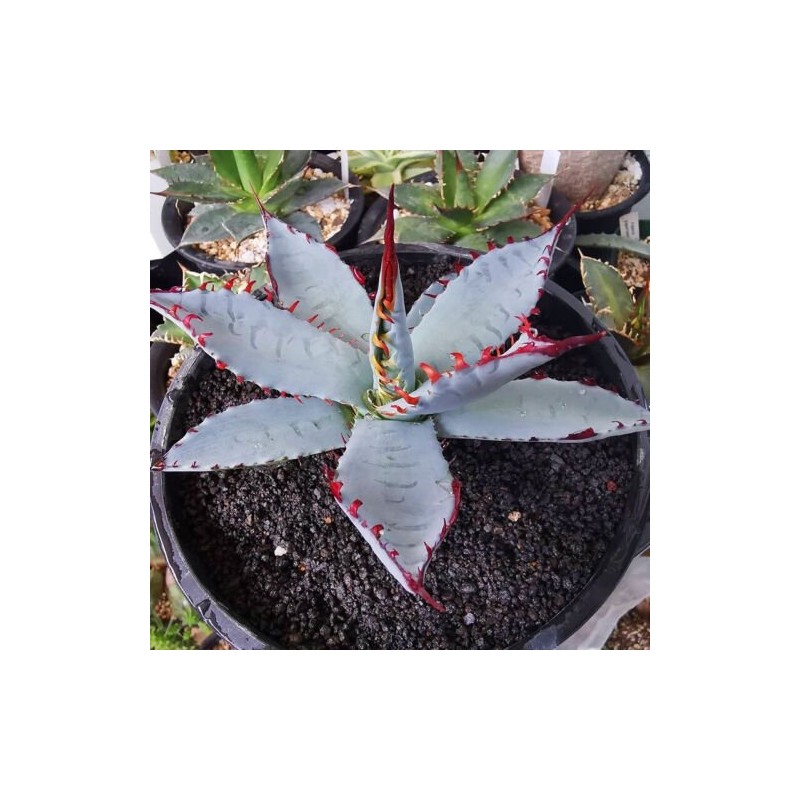 Com suas folhas graciosas e tonalidades que variam entre verdes suaves, cinzas e toques sutis de rosa, a Agave Sp.Kutsugen-no-Maiougi é verdadeiramente uma obra-prima da natureza. Esta suculenta se destaca em qualquer ambiente, desde jardins de pedra até interiores modernos.