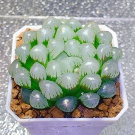 Descubra a beleza única da suculenta Gelo Jade (Haworthia Cooperi Liliaceae). Perfeita para amantes de plantas, essa suculenta encanta com suas folhas distintas. Compre agora e traga um toque natural para o seu espaço.