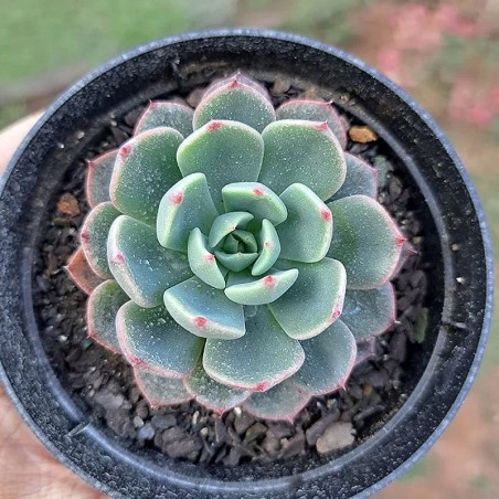 A Echeveria Sittifukumiana é uma suculenta verdadeiramente única e exótica que vai adicionar um toque de elegância ao seu jardim. Suas folhas suculentas formam rosetas compactas e apresentam uma combinação encantadora de tons suaves de verde e rosa. Com uma aparência delicada e sofisticada, essa planta se destaca entre as demais.